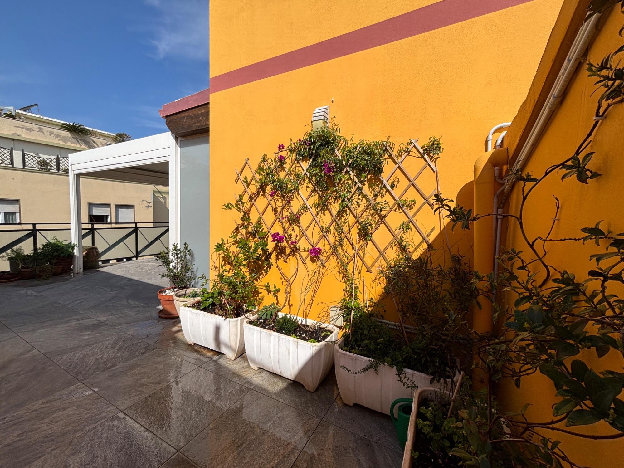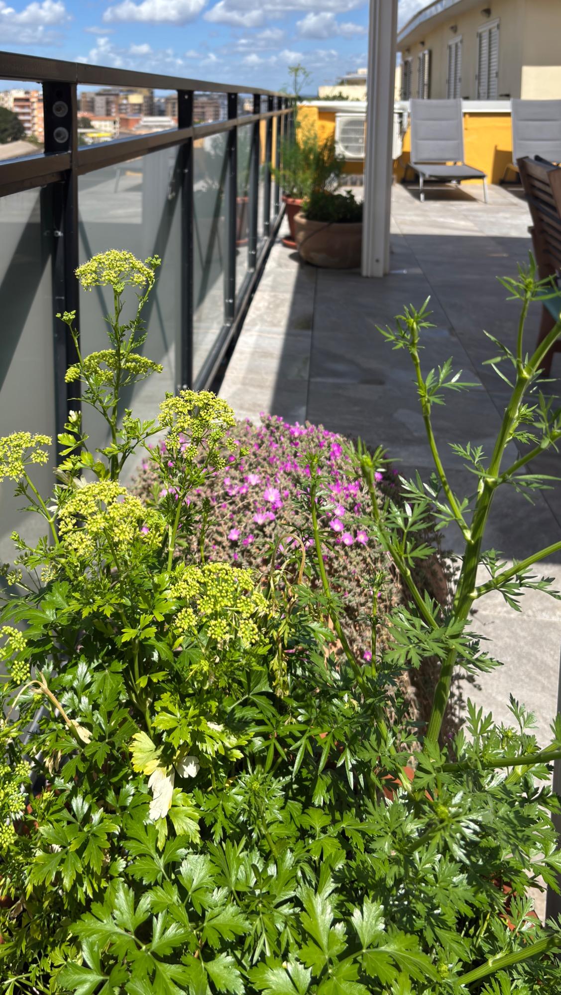 La posizione strategica permette di raggiungere in pochi minuti le vie dello shopping e i locali della movida cittadina, senza necessità di mezzi di trasporto. La vera gemma della casa è la splendida terrazza, uno spazio accogliente e attrezzato con lettini per il relax e tavolini perfetti per una colazione all’aperto con vista sulla città. Un angolo verde arricchito da erbe aromatiche completa l’ambiente, regalando un tocco di autenticità e profumi mediterranei.
